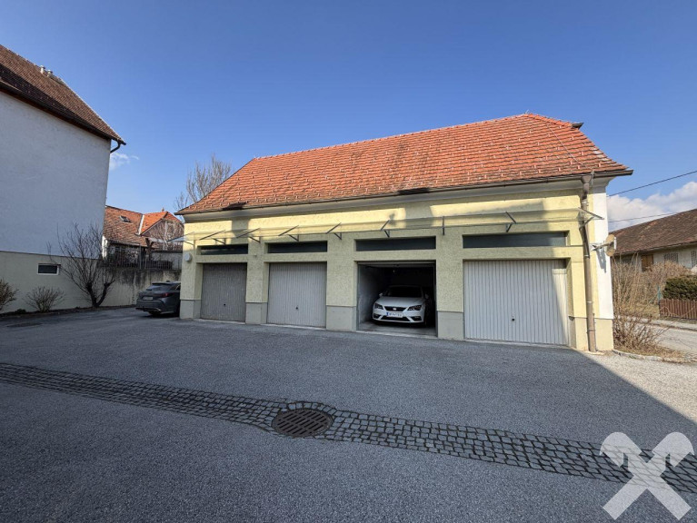 Zur Wohnung gehören auch eine Garage (ca. 22 m²) und ein Kellerabteil (ca. 8 m²).