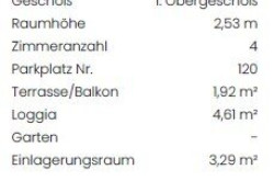 Parkett, Fliesen, Fußbodenheizung, Fernwärme, Personenaufzug, Westbalkon, Badewanne, Dusche, Kabel/Satelliten-TV, Parkplatz