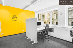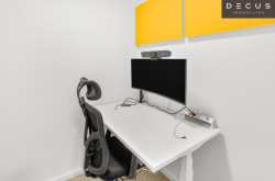 11 Private-Offices mit 35 Arbeitsplätzen ab 15 m², ein professionell ausgestatteter Meetingraum für bis zu 8 Personen, einen Web-Conference Room sowie Phone Booths und Community- und Networking Areas bietet das Objekt.
