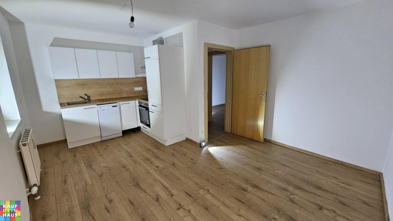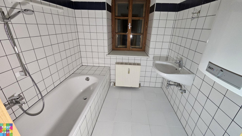 Fliesen, Laminatboden, Zentralheizung, Einbauküche, Badewanne