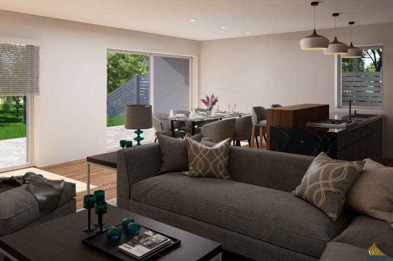 Jede Einheit verfügt über ca. 117 m² Wohnfläche, verteilt auf zwei Ebenen, und wird belagsfertig übergeben – auf Wunsch auch schlüsselfertig. TOP 1 und TOP 3 punkten zusätzlich mit einem massiv gebauten Außengeräteraum. Eine überdachte Terrasse lädt zum Verweilen ein, während zwei Freistellplätze pro Einheit bereits im Angebot enthalten sind. Optional können Sie ein Carport und einen Gartenzaun hinzufügen, wie es in den Visualisierungen dargestellt ist (nicht im Basisangebot enthalten). Ein eigener Gartenbereich bietet genügend Platz für individuelle Gestaltung, sei es für einen Spielbereich für Kinder, ein Blumenbeet oder eine gemütliche Grill-Ecke.