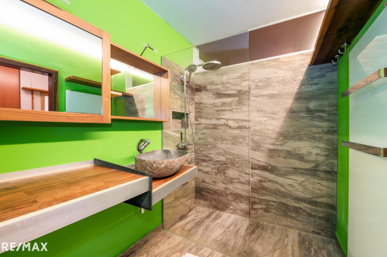 • Badezimmer mit Dusche und Waschmaschinenanschluss