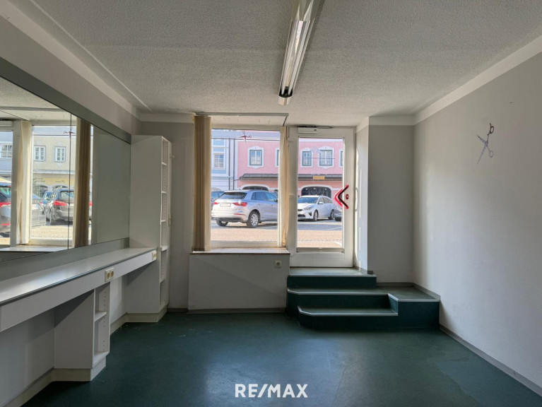 Die Geschäftsfläche im Erdgeschoss bietet vielseitige Nutzungsmöglichkeiten – sei es für Einzelhandel, Dienstleistungen oder ein Büro. Dank der hochfrequentierten Lage direkt am Stadtplatz profitieren Sie von bester Sichtbarkeit und Laufkundschaft.